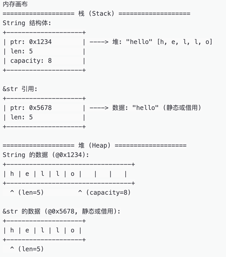 Alice是Rust新手,他在写一个日志处理程序时,习惯性地把所有字符串都用String::from创建。结果,程序运行得比乌龟还慢,内存占用直线上升!为什么?因为他忽略了String和&str的本质区别。让我们从头开始,探索这对组合如何在内存和性能上施展魔法。2. String vs. &str:内存里的“房屋”与“门牌号”要理解String和&str,我们先来用一个生活化的比喻: