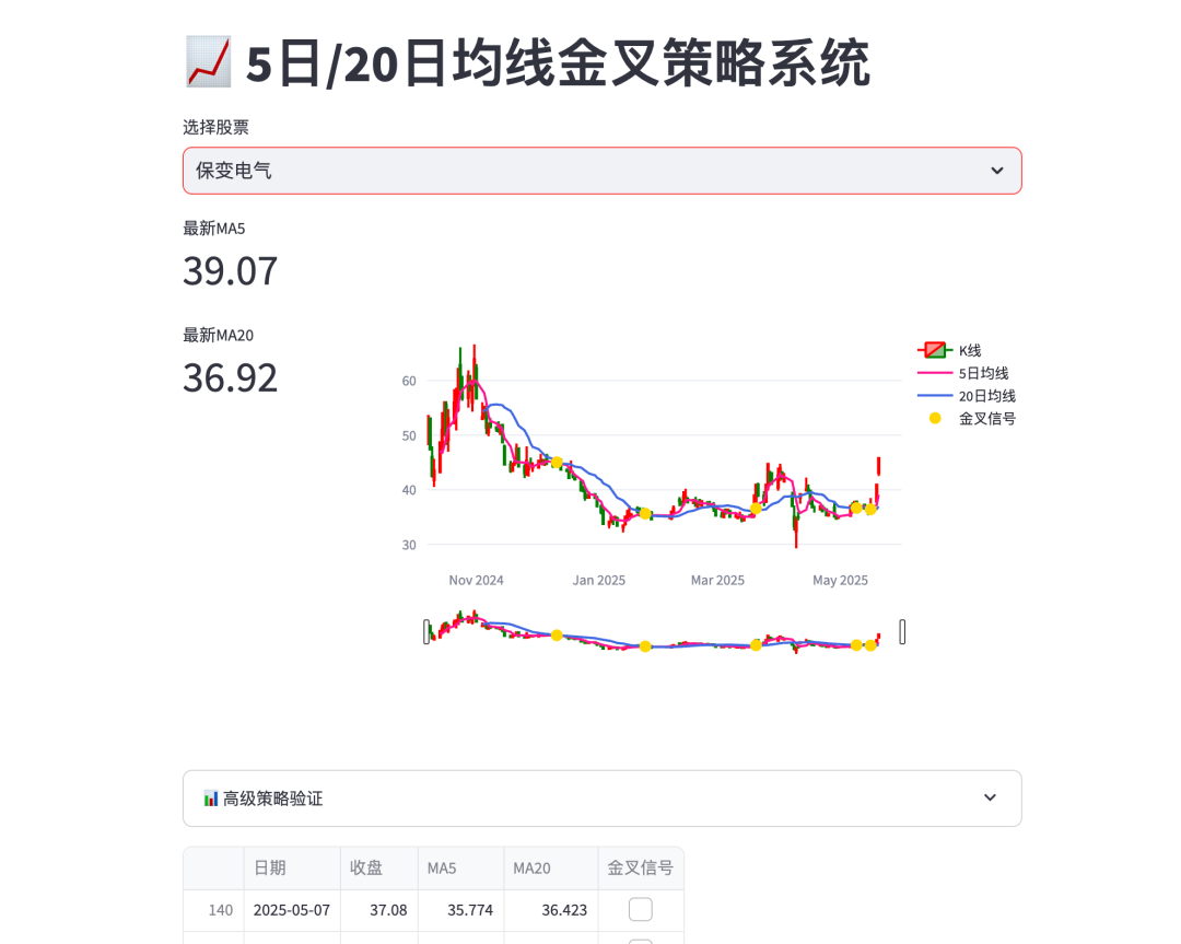 st.title("📈 5日/20日均线金叉策略系统")