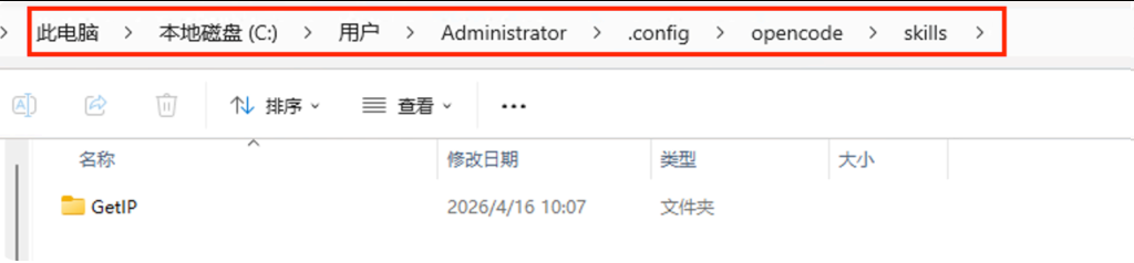 C:\Users\Administrator\.config\opencode\skills,Windows下安装路径;