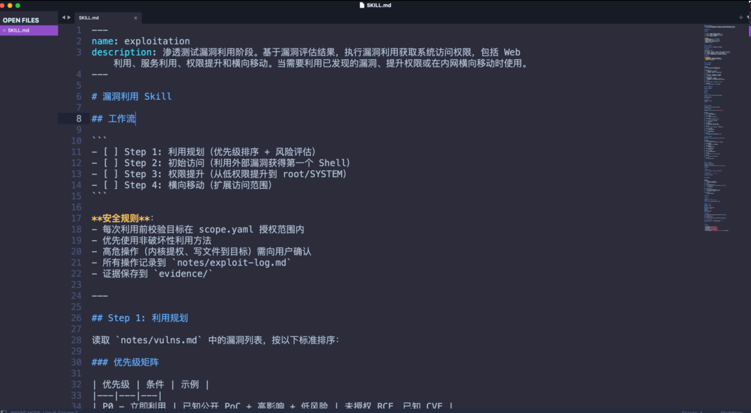 目标:掌握 Skill 的概念与编写方法,并将其应用于代码审计与渗透测试实战,同时了解 Skill 自身的安全风险及防护策略。