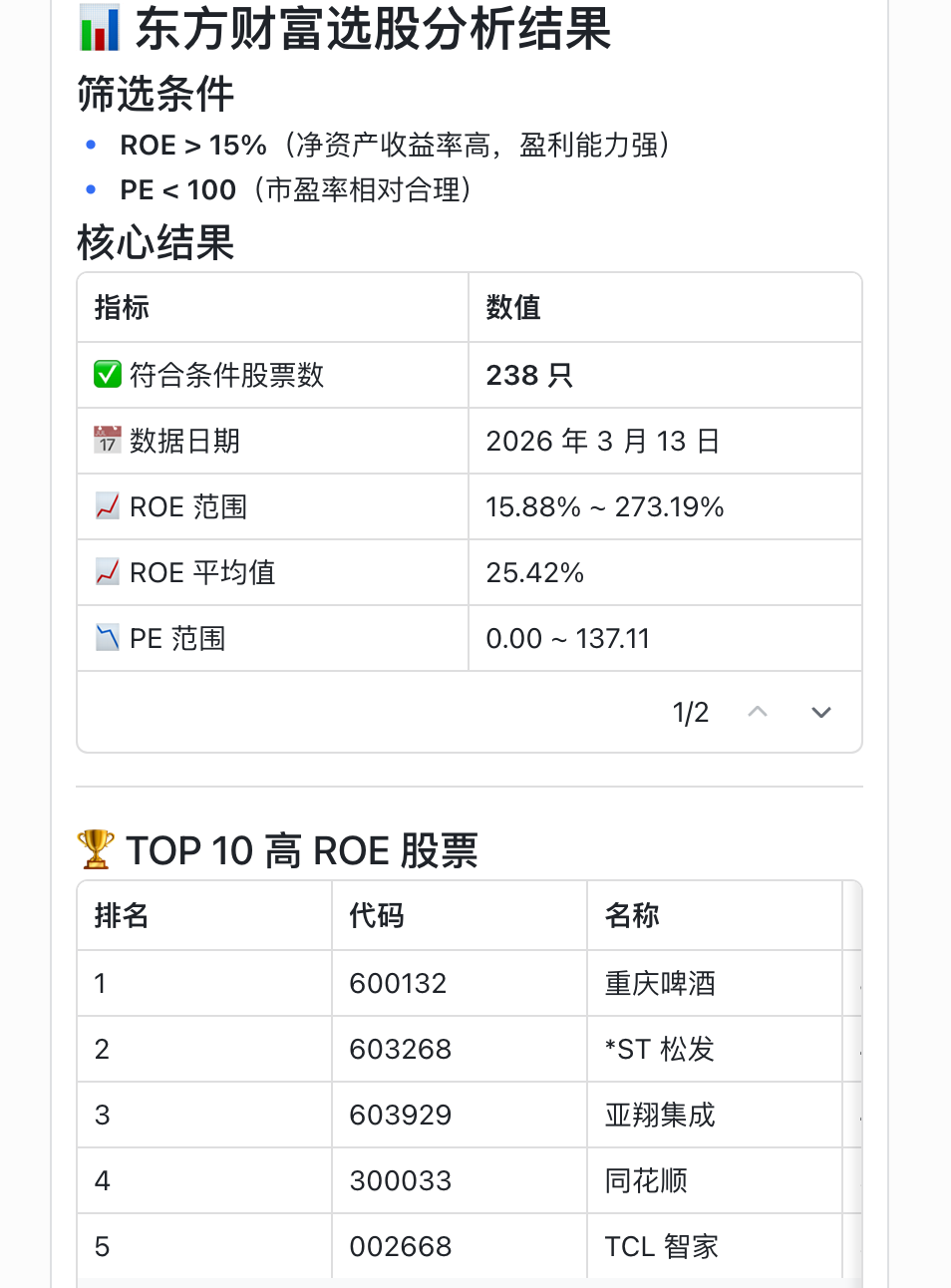 我问了一个roe<15%的问题, 就1个问题就1天50次额度没了?最主要是我还没得到我想要的结果。后面才发现应该用eastmoney_select_stock 触发。