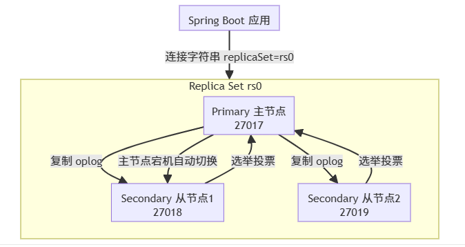 | 上生产 | 三节点 Replica Set | rs.initiate({...}) |