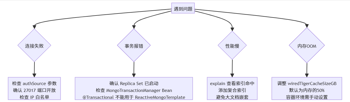 | 索引过多 | 写入变慢 | 删除冗余索引,单集合索引数量建议 ≤ 10 |