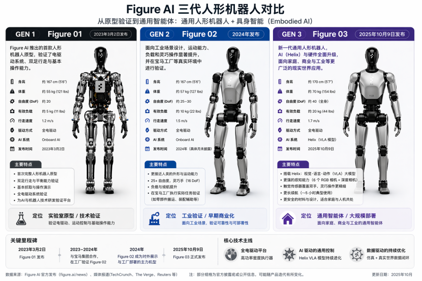 整体来看,这三代产品清晰地展示了Figure从技术验证走向实际应用,再迈向通用智能系统的战略路径。