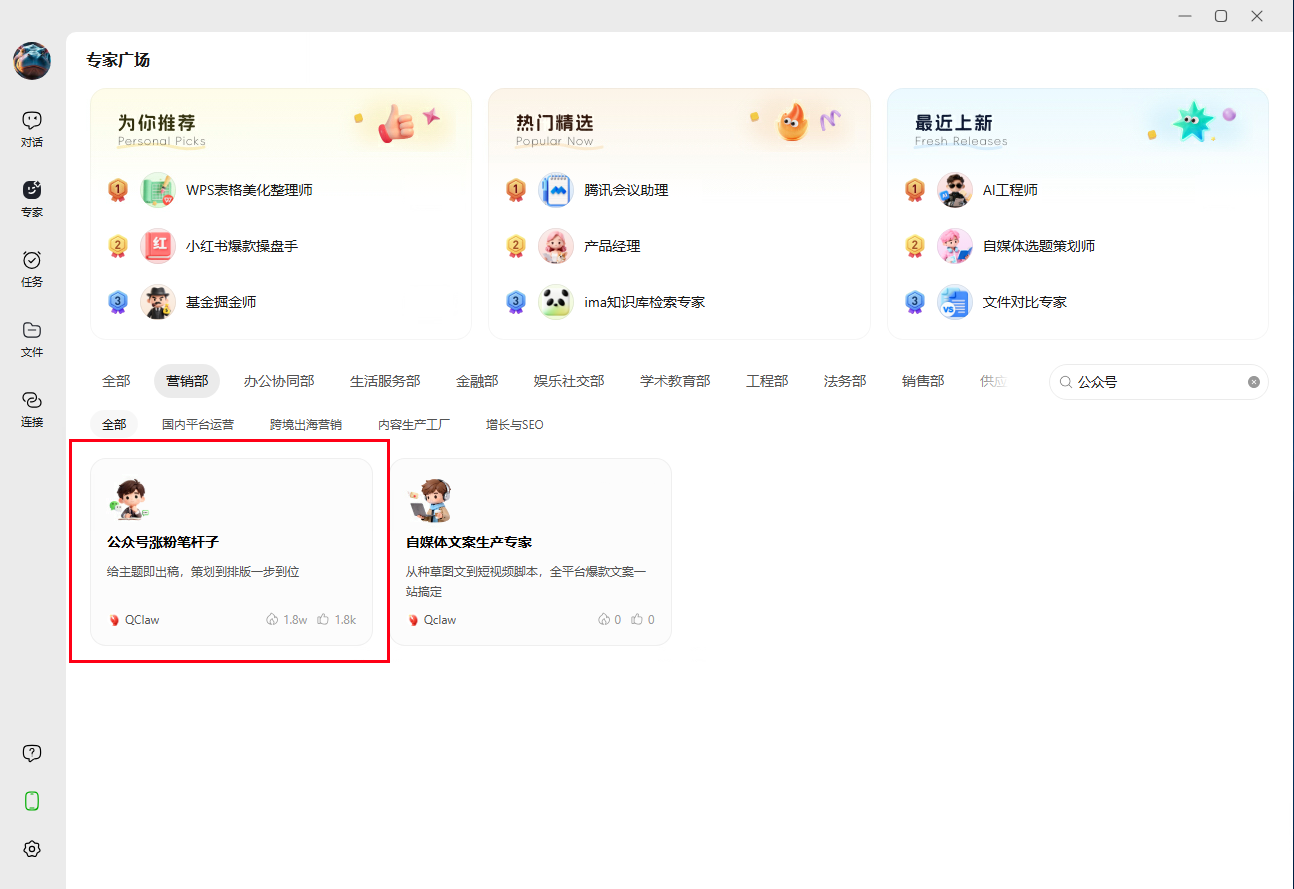 光有人设还不够,要让文章显得“专业”,必须让 AI 学会特定领域的技能。QClaw 支持通过 Skills(技能包) 机制注入外部能力。