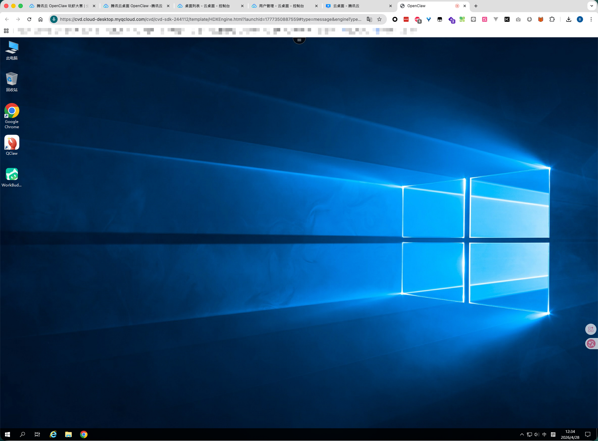 配置完毕后,再次刷新刚刚我们登录的云桌面页面就能看到你的桌面了(域名为:https://cvd.cloud-desktop.myqcloud.com/cvd/index.html)。