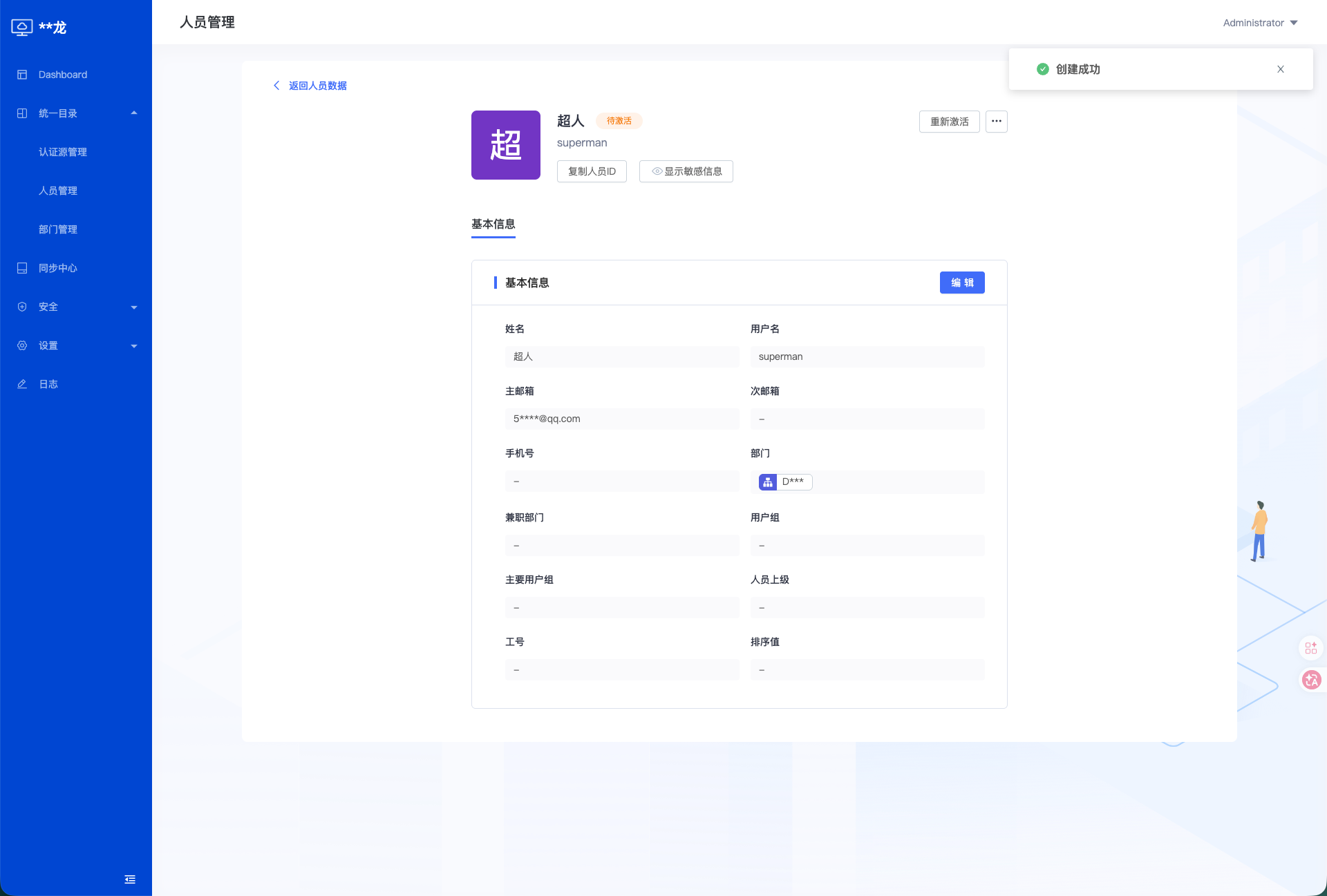 根据页面提示点击创建用户,然后填入相关信息,以下字段为必填字段: