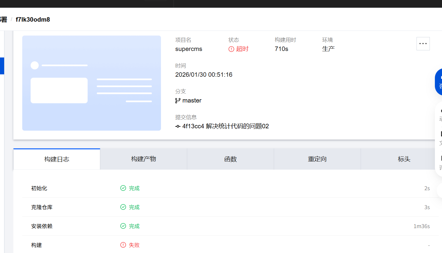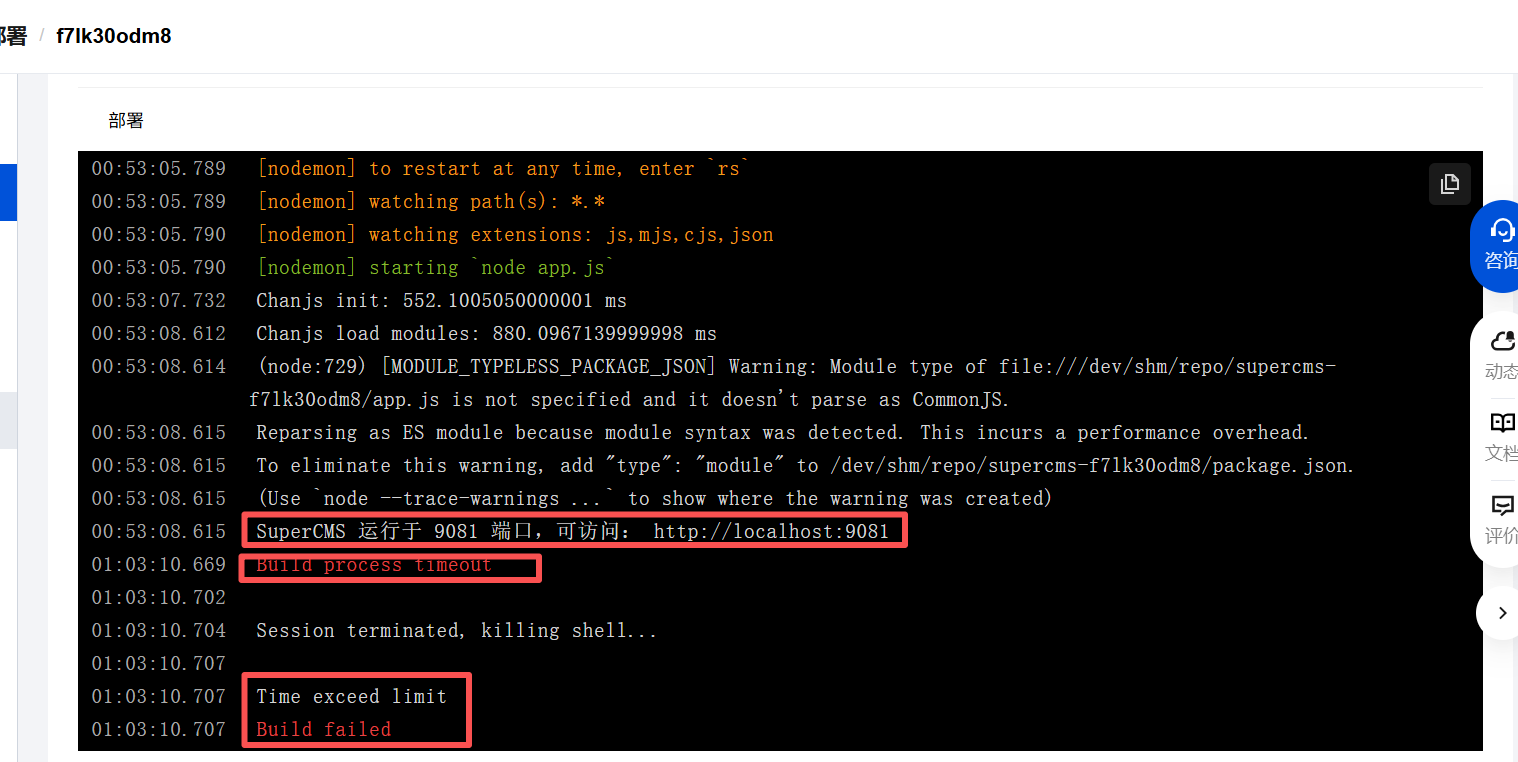 在EdgeOne上,从github上获取NodeJS项目进行部署时,部署到最后,就出现如上图的错误,导致部署总是不成功,请问这个该如何解决?谢谢!