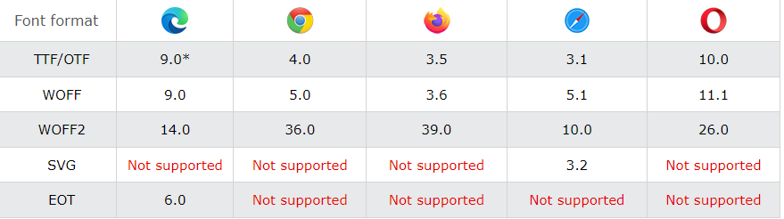 }TTF对于一些较旧的浏览器是有用的。WOFF压缩文件并为所有现代浏览器所支持。