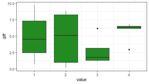 geom_boxplot(aes(x=value, y=diff, group=value), fill="forestgreen") +