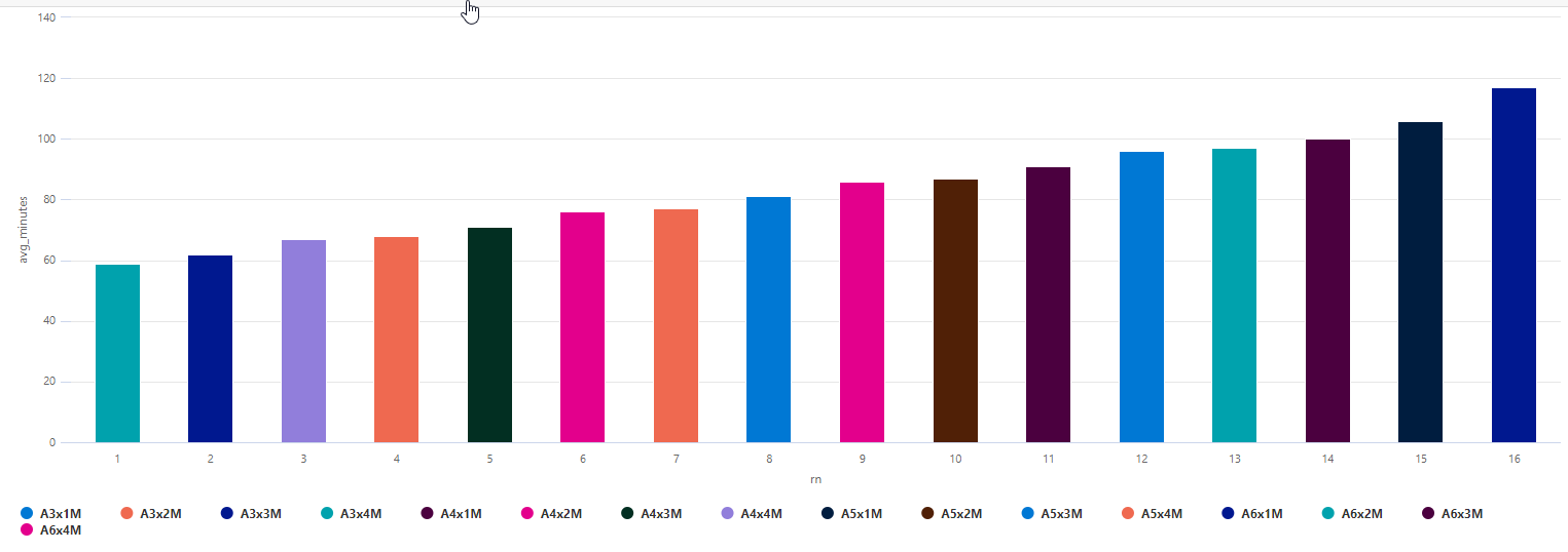 | project rn=row_number(), avg_minutes, strcat('A', agentCount, 'x', maxDOP, 'M')