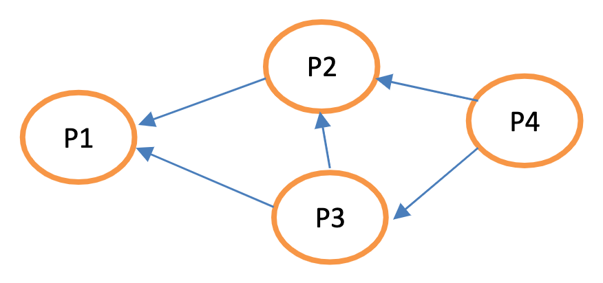 从图片上看,P1有三个二级跟随者( P2,P3,P4),P2有2 (P4和P3),P3有1 ( P4 ),P4有0。