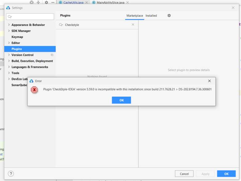 我正在尝试用最新版本的DevEcoStudio配置Checkstyle-IDEA插件,但它似乎与相同的插件不兼容。