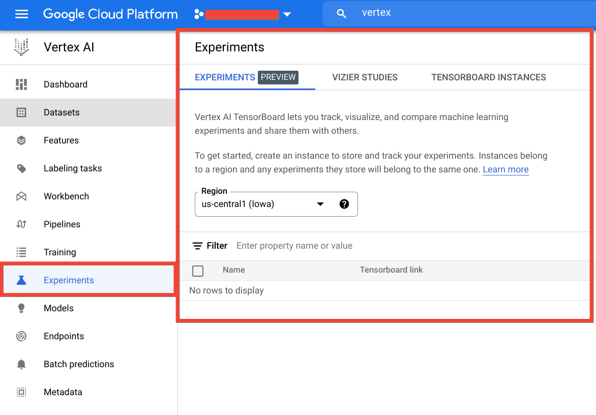 更新:几乎所有特性都支持实验。只需查看这里:实验-顶点AI -谷歌云平台