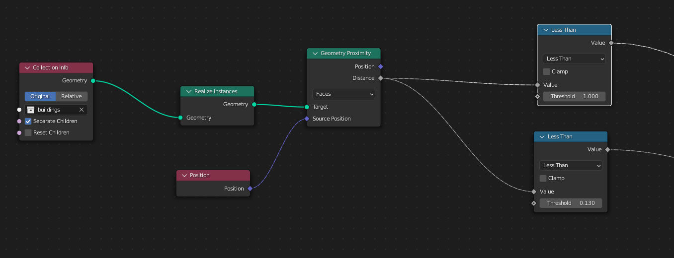 我确实尝试过使用网格布尔方法,但它的资源太重。因为建筑物不是一个问题,但是当我用它来避免在大岩石内产卵的时候,它使整个几何节点真正地提升了资源的智慧。