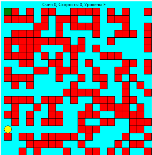 我想用二维数组随机生成水平。0=空,1=墙,如何生成从起点到终点(黄色圆圈,出现在地图上一个随机的自由点)位置的可通路径的水平?
