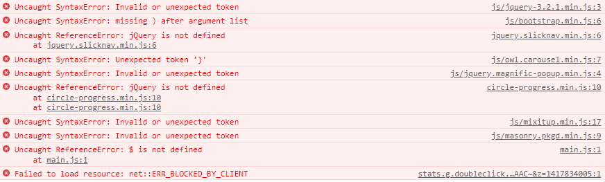 转到浏览器中的“网络”选项卡,检查在浏览器中接收到的http状态,以了解所请求的资源,即本例中的jQuery。引导引发的错误可能只是jQuery未加载的结果。我想一定有依赖关系吧。