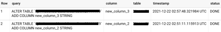 下面的查询具有一个从cloudaudit_googleapis_com_data_access_*查询的CTE,因为它记录了数据的更改,并且只得到完成的作业,因此对jobservice.jobcompleted进行了过滤。查询CTE以获得包含"COLUMN"的查询,而不包含没有像我们将要运行的查询那样的目标表的查询。