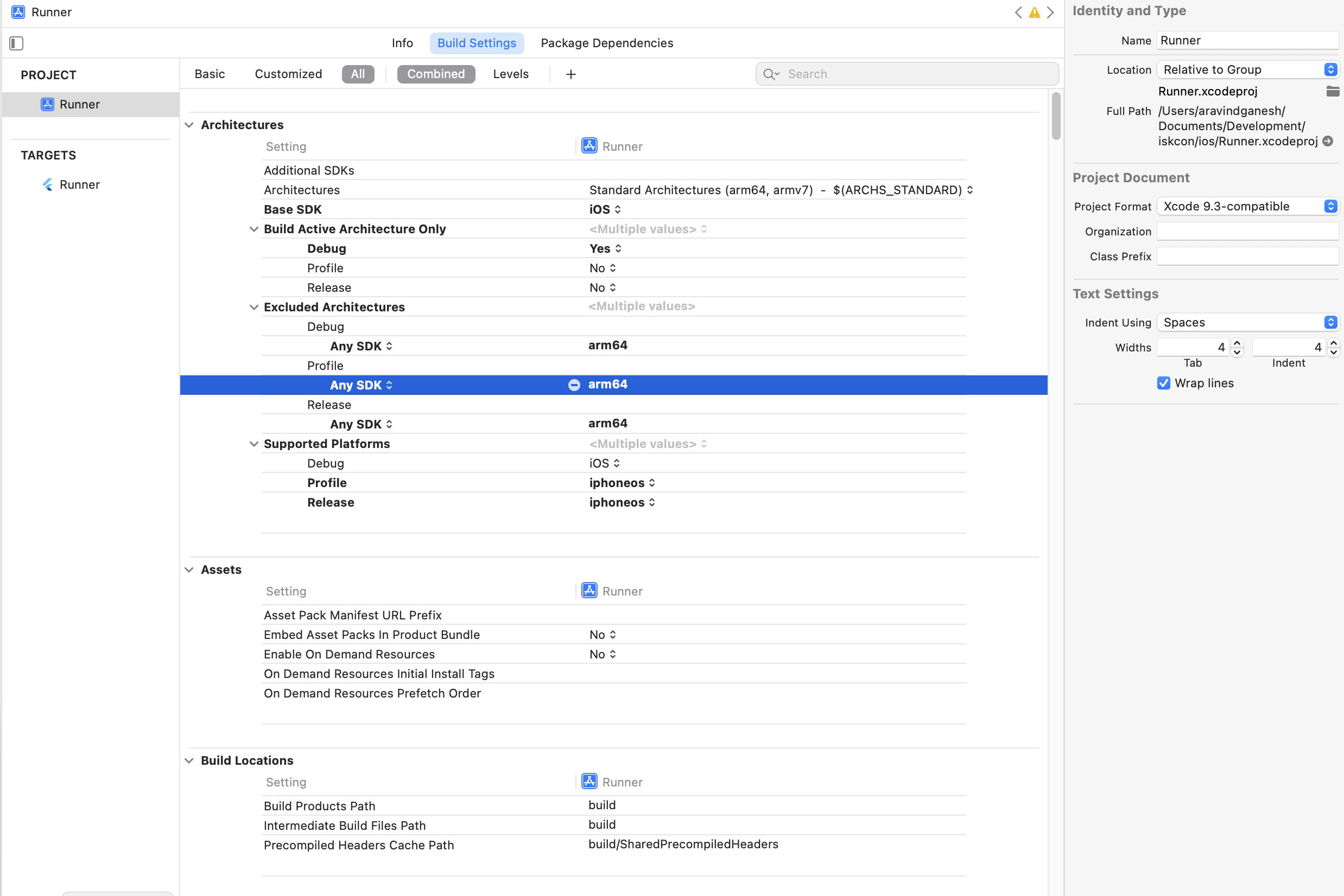 /Users/aravindganesh/Documents/Development/myproject/ios/Runner.xcodeproj: error: The linked framework 'Pods_Runner.framework' is missing one or more architectures required by this target: x86_64. (in target 'Runner' from project 'Runner')