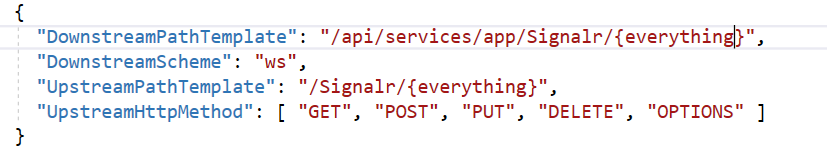 但是,当我试图通过API网关访问signalr时,所有请求都处于挂起状态,并得到此错误