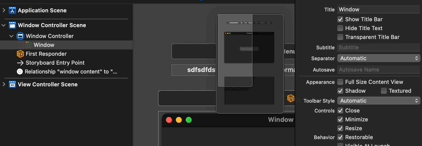 如果选择设计没有标题栏的窗口,则必须从窗口中删除标题栏。若要删除标题栏,请将标题栏的titleVisibility属性设置为UITitlebarTitleVisibility.hidden,将工具栏属性设置为零。下面的代码演示如何在设置新场景期间从窗口中移除标题栏及其分隔符。