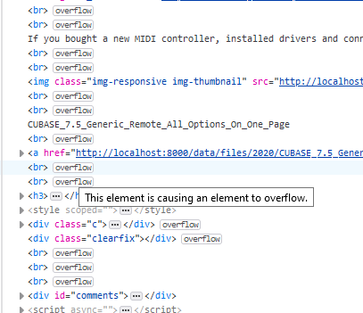 我不使用Bootstrap或reset.css/reboot.css,我试图用通用的css构建一个网站。我正在做一些非常基本的事情,但是我得到了“这个元素导致一个元素溢出”--实际上到处都是。我已经很长一段时间没有在没有任何css框架的情况下完成布局了,我也找不到关于这个问题的任何东西。即使是br也会导致溢出!这是什么?我没有看到任何蝎子,一切看上去都和我预期的一样。这条消息太烦人了。