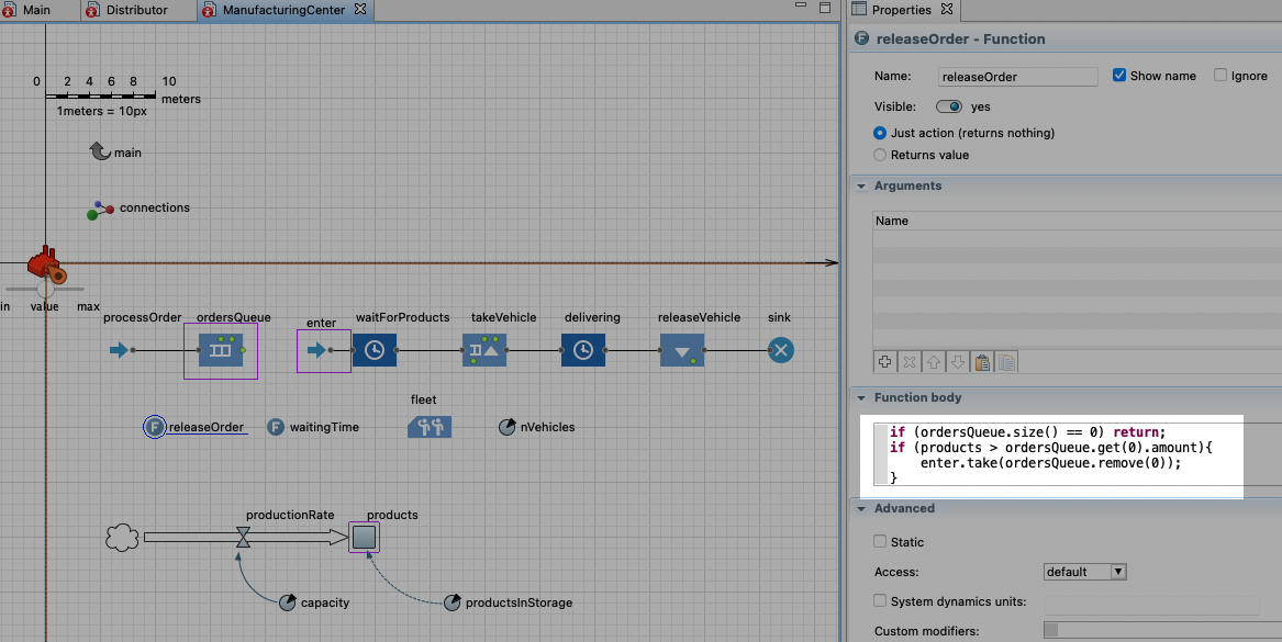 我从AnyLogic示例模型中的产品交付示例创建了这个模型。