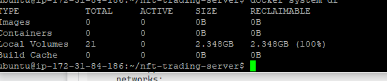 docker volume prune它应该删除任何容器分离或未使用的卷,我使其习惯于在我的aws实例上定期运行。