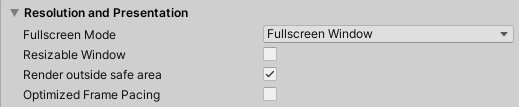 Android Player settings -> Resolution and Presentation
