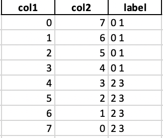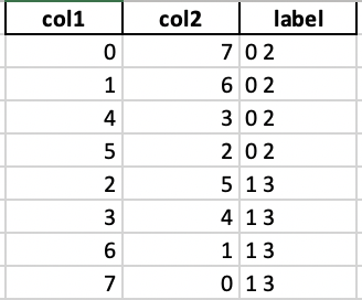 'label': ['0', '0', '1', '1', '2', '2', '3', '3']