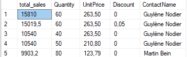 (od.UnitPrice * (1 - od.Discount) * od.Quantity) total_sales,