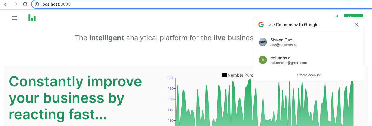 我在我们的web应用程序中添加了google一键,并在本地主机上测试了它的工作性能(见图)。