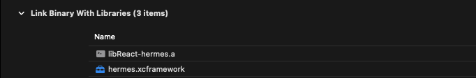 dyld: Library not loaded: @rpath/hermes.framework/hermes