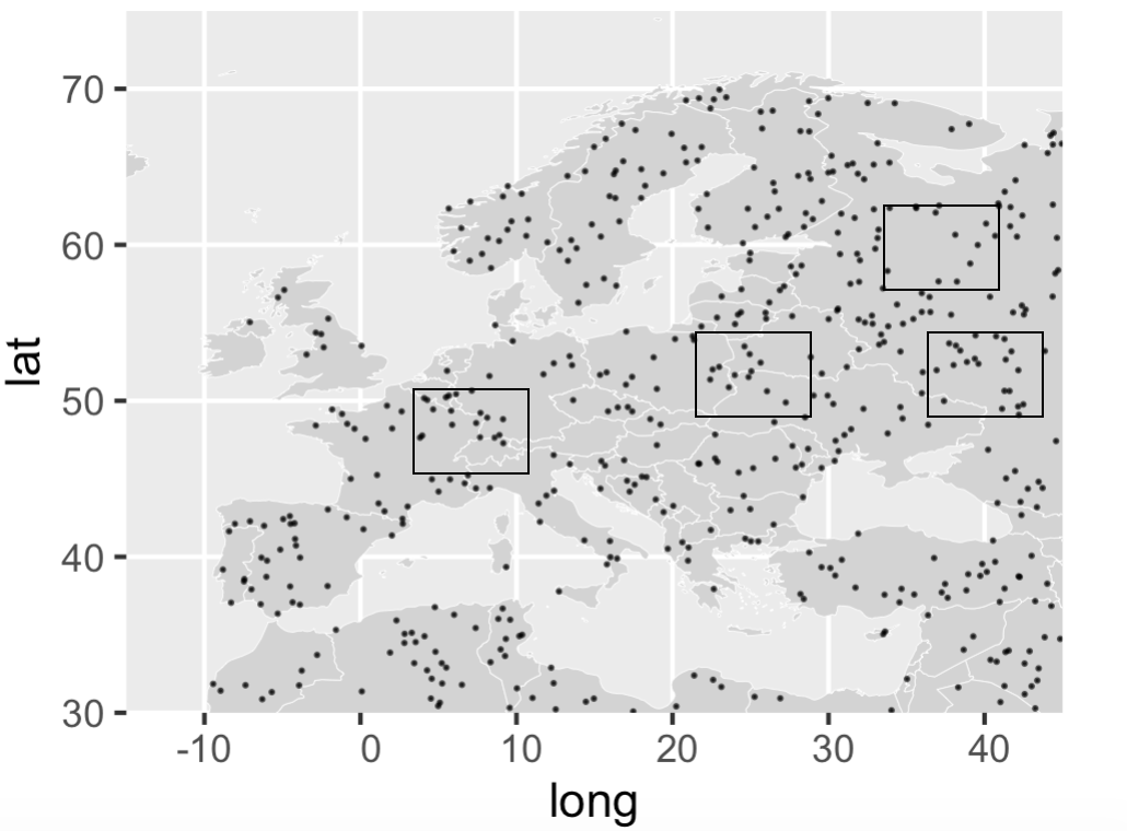 coord_sf(xlim = c(-15, 45), ylim = c(30, 75), expand = FALSE)