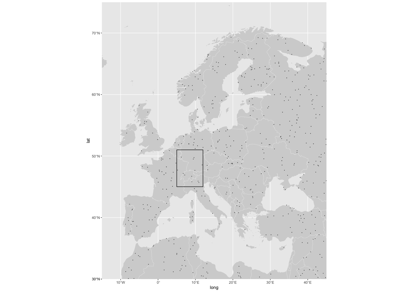 geom_point(data = europe_land,aes(long, lat),