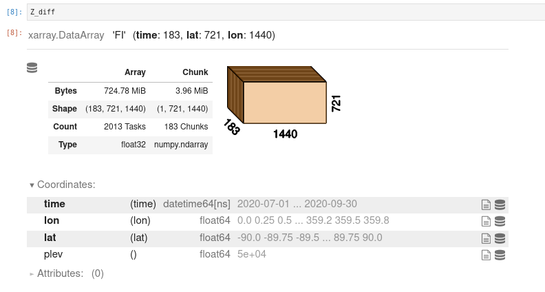 看起来你的记忆快没了。当使用dask (链接)时,数据会被分割成块(在您的例子中是183个)。因此,数据集中只有一小部分同时保存在内存中。Numpy数组不能以这种方式工作,所以当您使用.values()时,整个数据集将被读取到内存中,并且超出了内存。