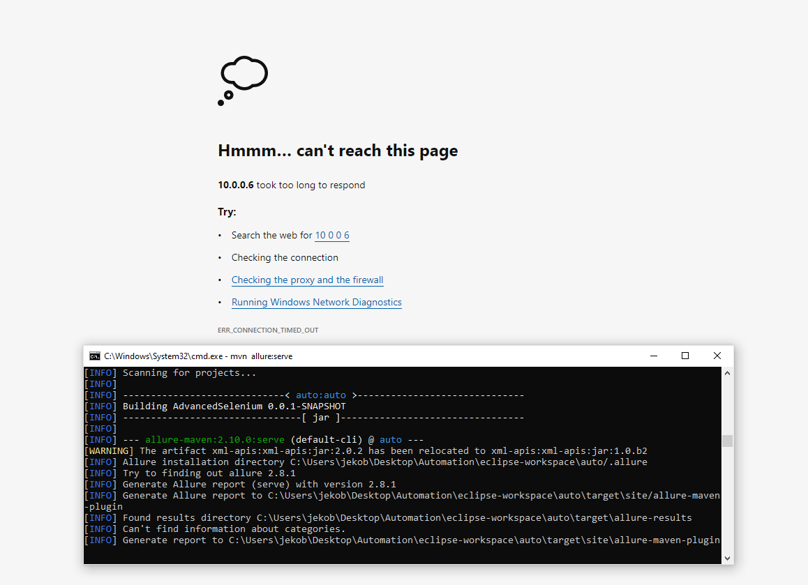 实际上,由于防病毒的防火墙块,诱惑力报告没有打开。禁用防火墙后,报告将不顾cmd处的警告消息而运行。