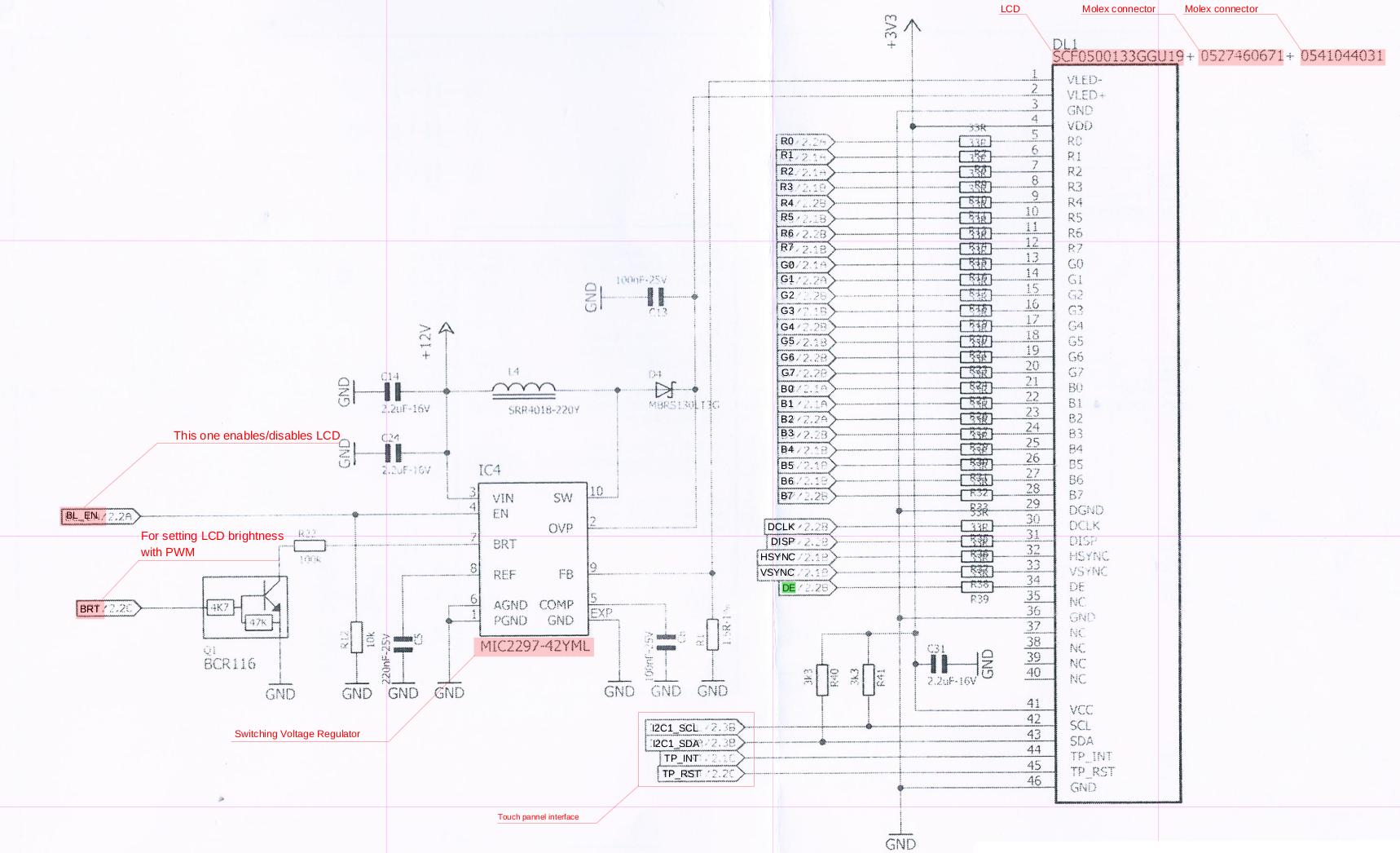 BRT - PWM信号,用于设置液晶显示的背景LEDs.BL_EN的亮度- gpio信号,该信号支持或禁用液晶显示的背景LED。MIC2297是由+12V供电的。