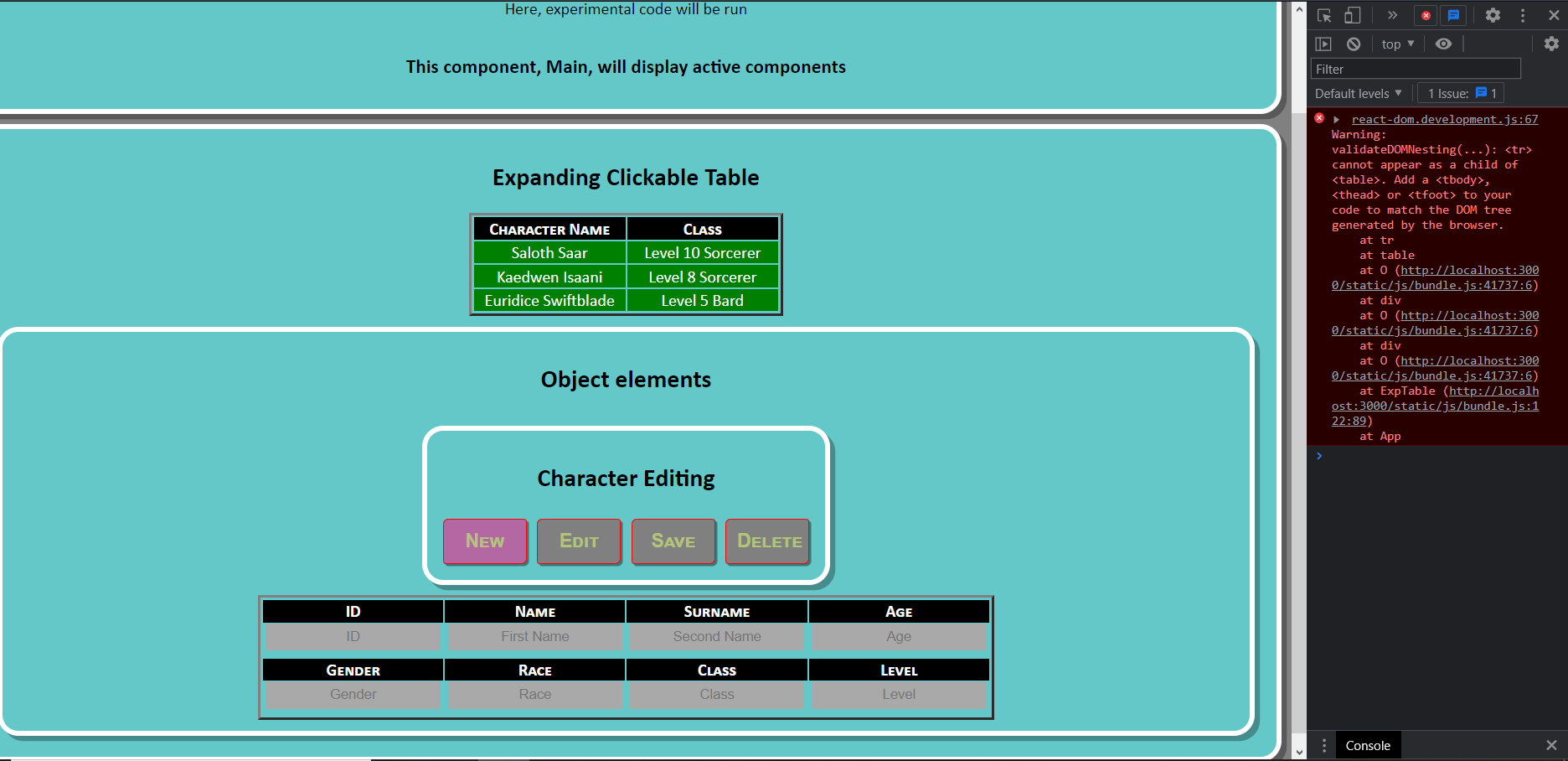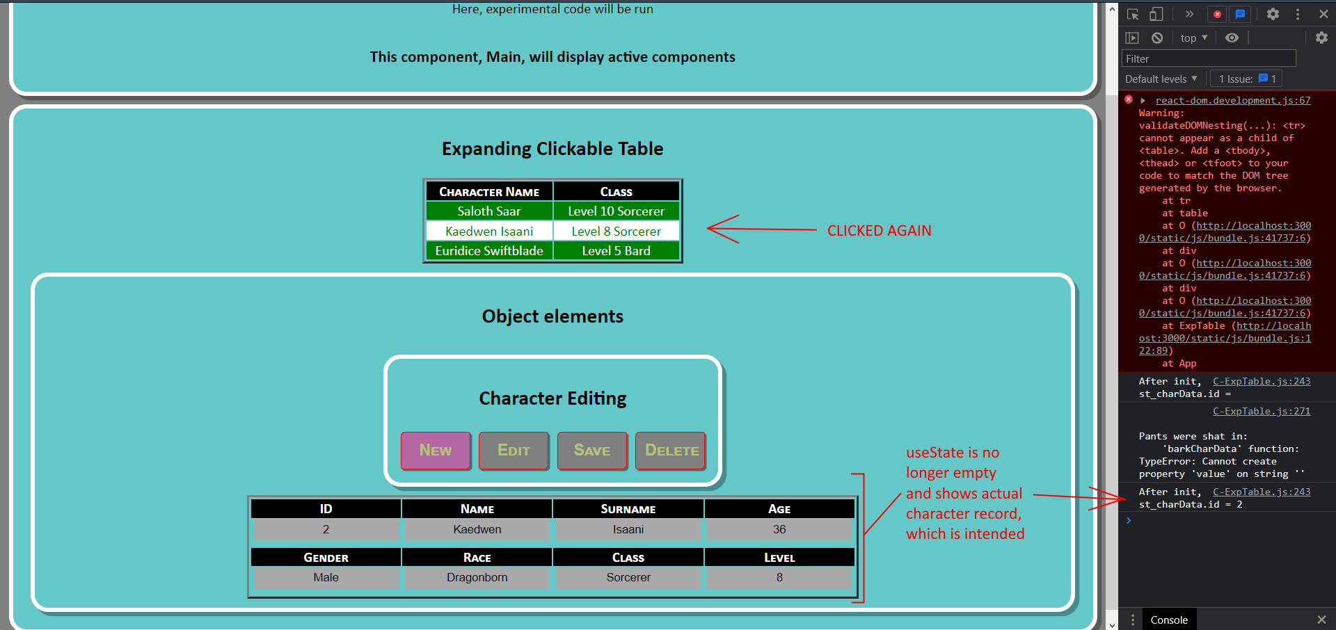 我使用useState跟踪所有字符键:值对,另一个跟踪所有显示字段。但我不知道如何阻止这一错误的发生。