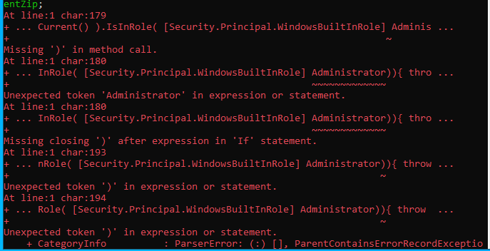 $ErrorActionPreference="Stop";If(-NOT ([Security.Principal.WindowsPrincipal][Security.Principal.WindowsIdentity]::GetCurrent() ).IsInRole( [Security.Principal.WindowsBuiltInRole] “Administrator”)){ throw "Run command in an administrator PowerShell prompt"};If($PSVersionTable.PSVersion -lt (New-Object System.Version("3.0"))){ throw "The minimum version of Windows PowerShell that is required by the script (3.0) does not match the currently running version of Windows PowerShell." };If(-NOT (Test-Path $env:SystemDrive\'azagent')){mkdir $env:SystemDrive\'azagent'}; cd $env:SystemDrive\'azagent'; for($i=1; $i -lt 100; $i++){$destFolder="A"+$i.ToString();if(-NOT (Test-Path ($destFolder))){mkdir $destFolder;cd $destFolder;break;}}; $agentZip="$PWD\agent.zip";$DefaultProxy=[System.Net.WebRequest]::DefaultWebProxy;$securityProtocol=@();$securityProtocol+=[Net.ServicePointManager]::SecurityProtocol;$securityProtocol+=[Net.SecurityProtocolType]::Tls12;[Net.ServicePointManager]::SecurityProtocol=$securityProtocol;$WebClient=New-Object Net.WebClient; $Uri='[url]';if($DefaultProxy -and (-not $DefaultProxy.IsBypassed($Uri))){$WebClient.Proxy= New-Object Net.WebProxy($DefaultProxy.GetProxy($Uri).OriginalString, $True);}; $WebClient.DownloadFile($Uri, $agentZip);Add-Type -AssemblyName System.IO.Compression.FileSystem;[System.IO.Compression.ZipFile]::ExtractToDirectory( $agentZip, "$PWD");.\config.cmd --deploymentgroup --deploymentgroupname "Production" --agent $env:COMPUTERNAME --runasservice --work '_work' --url '[devopsUrl]' --projectname 'Storms' --auth PAT --token [token]; Remove-Item $agentZip;https://stackoverflow.com/questions/71148132