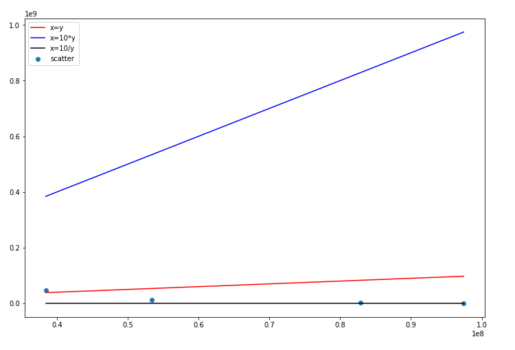 我想在散点图上画一个3行图,以检查散点图中的点是多少,我的散点图如下所示