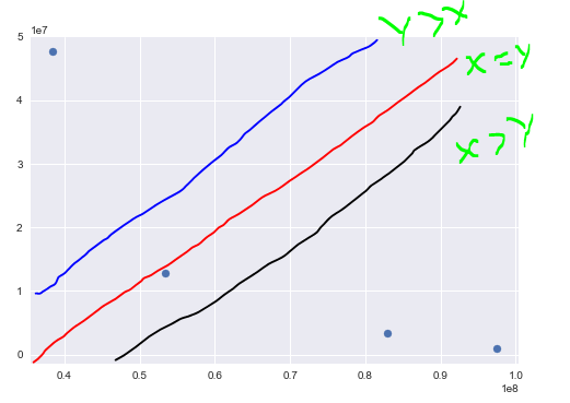plt.show()但是,您可能需要3条具有相似坡度但不同交点的直线,因此(更像在图中):