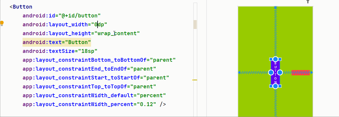 下面是当app:layout_constraintWidth_percent增加,使单词"Button“不截止时会发生的情况。