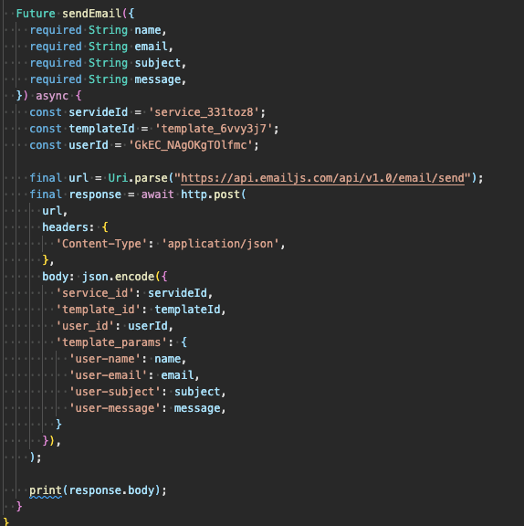 我试图在颤振网络中创建一个投资组合,然后我想添加一个联系人表格。我用的是EmailJS。当我点击“发送”按钮时,我会收到电子邮件,但它们是空白的.