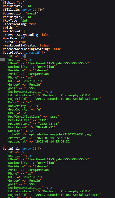 然后使其等于CV_id,以便在DB表中存储它:这是我在控制器中使用的存储方法: