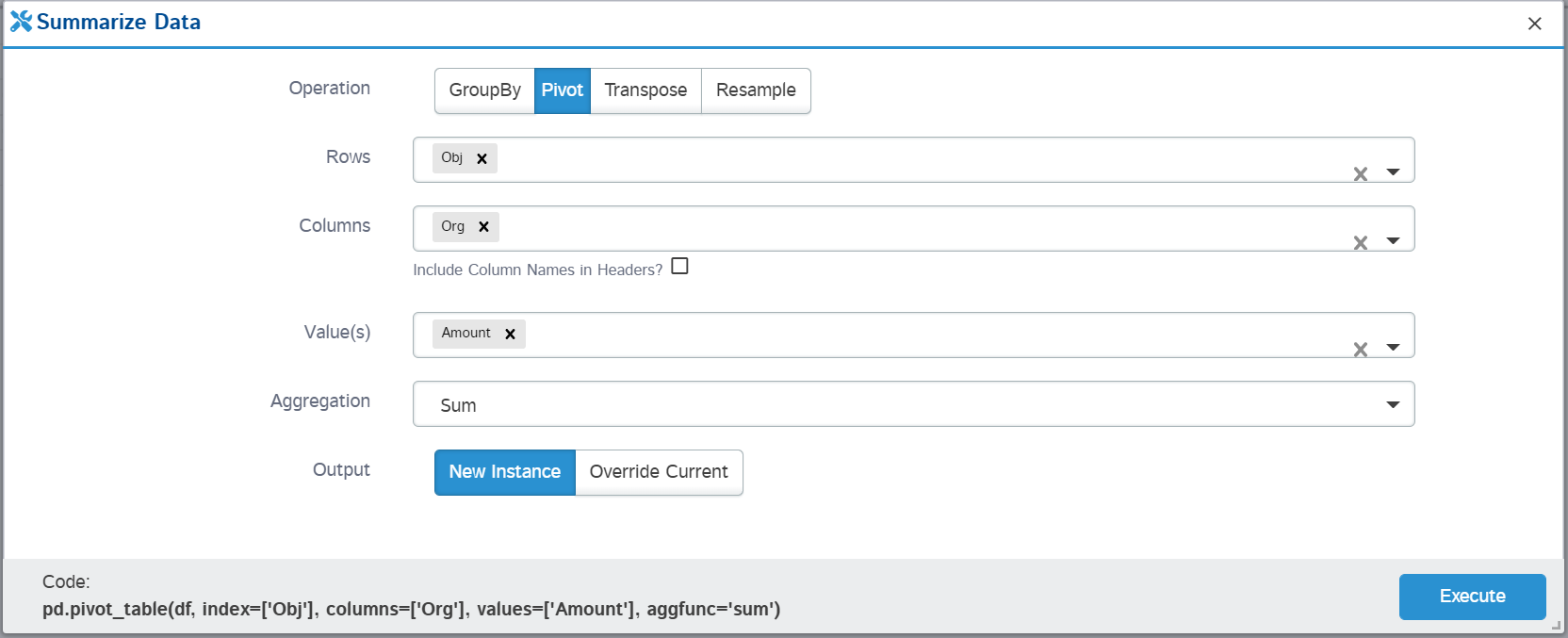启动“汇总数据”并使用以下参数指定“数据轴”: