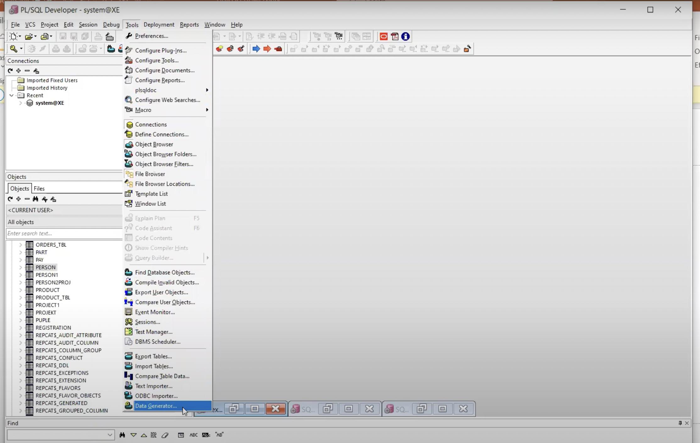 我正在使用Oracle SQL Developer版本21.4.2.018.1706-x64,我找不到工具数据生成器。
