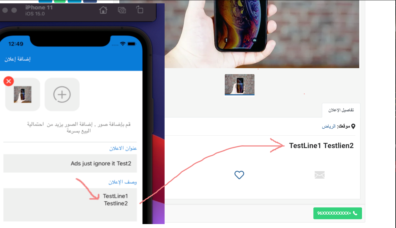当我在IOS应用程序上保存从TextEditor输入的数据,然后在网站版本上预览该文本时,它不会显示换行符,而是将整个描述视为单行文本。