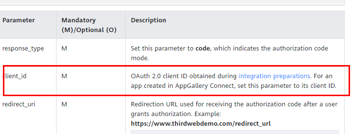 如果您在AppGallery连接中创建了一个应用程序,请将client_id和client_secret设置为在创建应用程序之后获得的客户端ID和客户端机密。