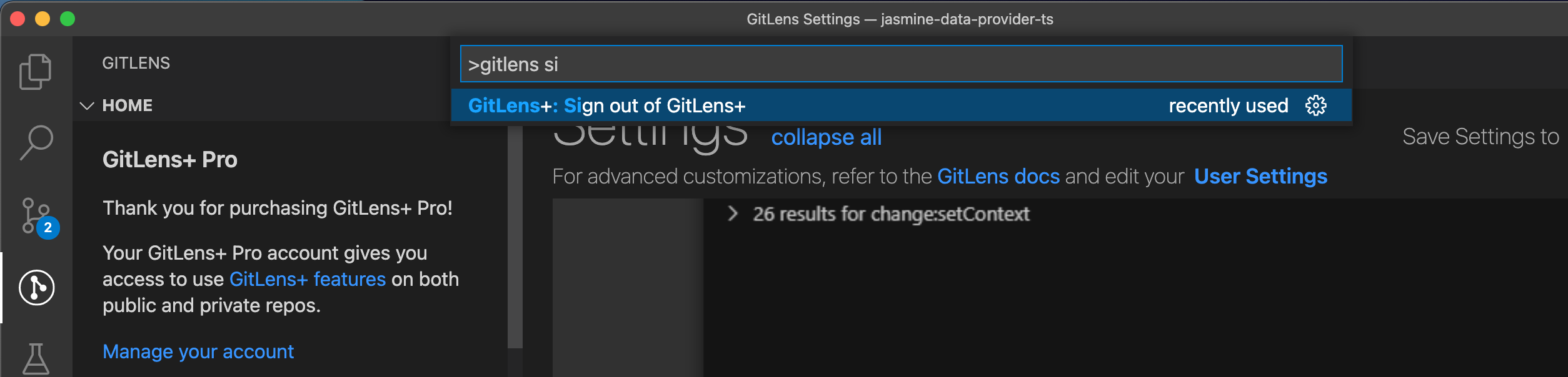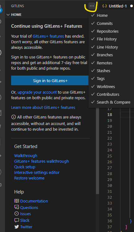 转到VS代码命令Pallete并选择GitLens+:退出Gitlens+